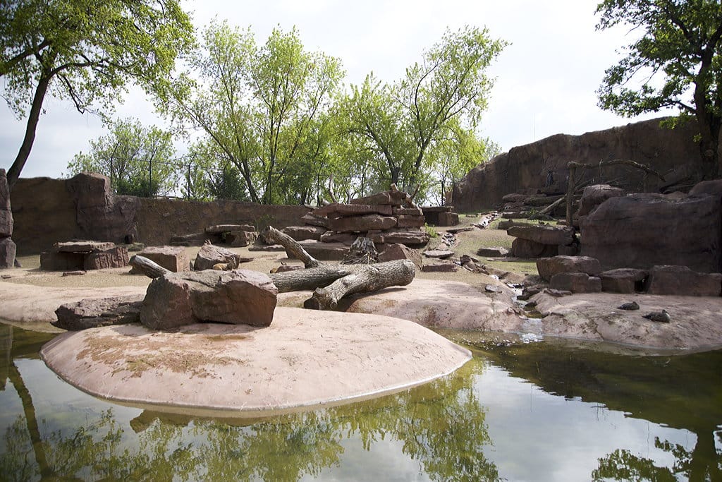 The spacious grounds offer zoo visitors several opportunities to observe the animal community from different perspectives. A waterfall cascades from a height of over 10 meters down the rock face into the enclosure, and is specially illuminated during evening events.