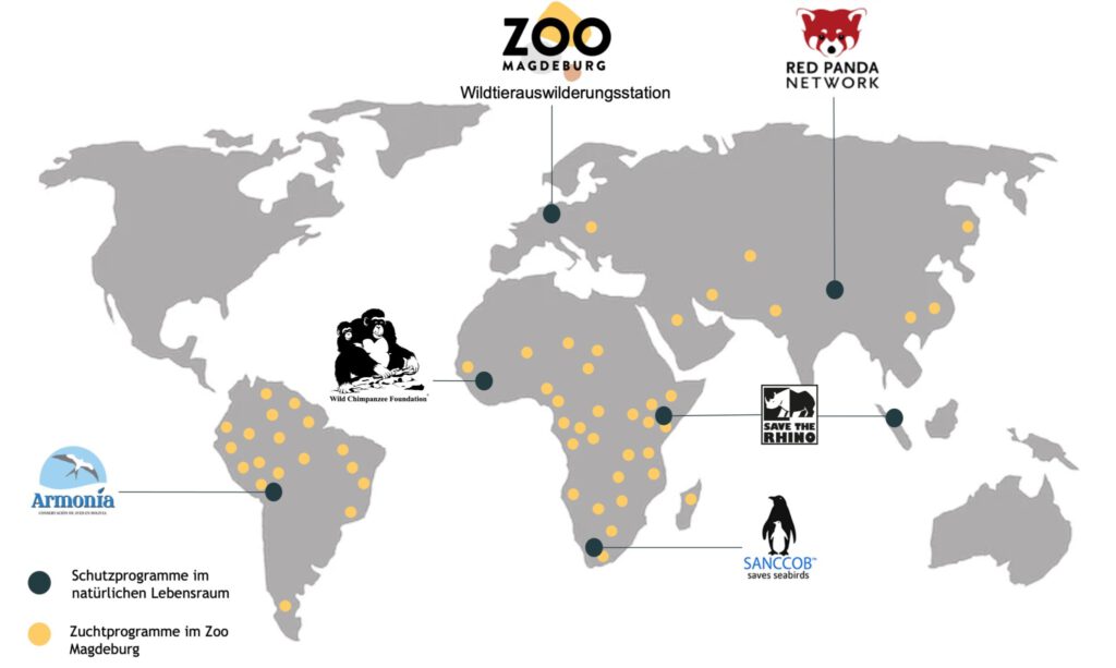 Magdeburg Zoo supports the conservation of endangered species through its participation in breeding and reintroduction programs. With your support, we aim to further promote species conservation projects in their natural habitats, both globally and locally.