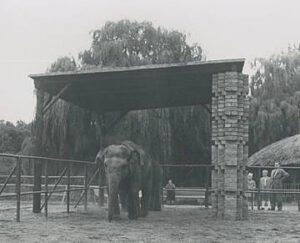 In den 1960er Jahren konnte man Tiere noch kaufen und sich anschließend erst Gedanken über ihre angemessene Haltung machen. Exemplarisch hierfür sind die Anfänge der Elefanten- und Schimpansenhaltung im Magdeburger Zoo. Die erste Asiatische Elefantenkuh “Sonja” wurde 1960 begeistert von den Magdeburgern empfangen. 1961 verließ Klaus-Günther Witstruck den Zoo, um das Direktorat in Halle zu übernehmen; an seine Stelle rückte der vormalige wissenschaftliche Assistent des Tierparks Berlin, Dr. Manfred Bürger. Direkt zu Beginn seiner Amtszeit konnte sich der Zoo über die Ankunft seiner zweiten asiatischen Elefantenkuh Kati freuen, die nun der im Vorjahr nach Magdeburg gekommenen Sonja Gesellschaft leistete. Für die Magdeburger waren die Elefanten damals natürlich eine Sensation – mit 389.000 Besuchern erzielte der Zoo 1961 einen neuen Rekord. Heutzutage undenkbar waren allerdings die Haltungsbedingungen der damals noch jungen Elefanten. Tagsüber wurden sie von ihren Pflegern durch den Zoo geführt und so den Besuchern präsentiert, um abends in Notunterkünften auf dem Wirtschaftshof untergebracht zu werden. Im darauffolgenden Jahr baute der Zoo wenigstens eine Art „Außengehege“ auf dem Gelände, auf dem heute die Giraffen stehen. Doch es sollte noch bis 1967 dauern, bevor die Elefanten ein eigenes Haus bekamen – und das in buchstäblich letzter Minute, denn inzwischen passten sie kaum noch durch die Türen ihrer Notunterkunft. Dass es überhaupt gelang, in dem jungen und kleinen Magdeburger Zoo das erste große Warmhaus der DDR zu errichten, war geradezu eine Sensation und kann aus heutiger Sicht nicht hoch genug eingeschätzt werden. Gleichwohl entspricht das Dickhäuterhaus inzwischen schon lange nicht mehr den Haltungsrichtlinien für seine Bewohner.